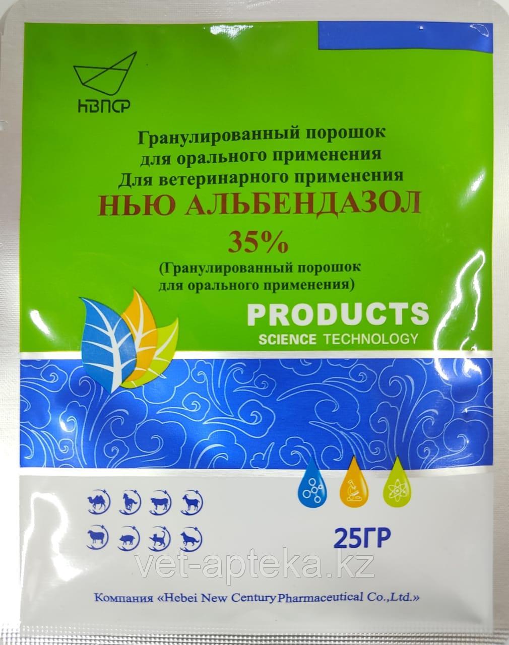 КРС, лошадям и верблюдам 7,5 г порошка на 350 кг массы животного.